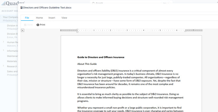We hope these changes for documents will streamline work for our clients, make files easier to manage, and contribute to overall efficient insurance program administration. Please stay tuned for additional Quadra updates!