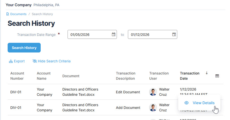 Another major enhancement is the new document viewer that displays documents directly in Quadra. Clicking on the thumbnail or the file name (available in grid or thumbnail view) will open the document viewer. Previously, documents could only be downloaded or opened in a separate browser tab.