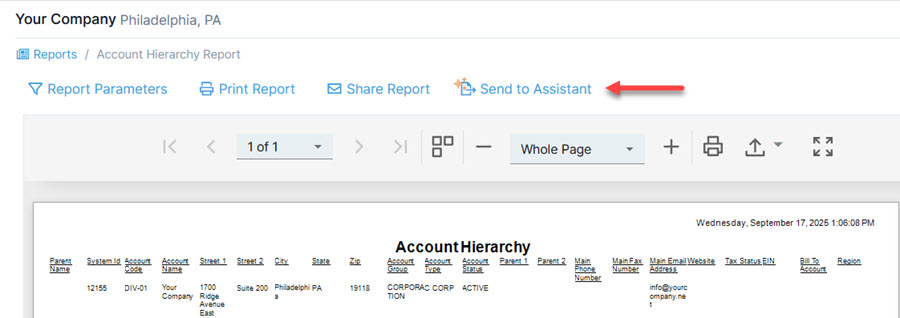 To send a report to the assistant, click ‘Send to Assistant’ from the top menu once your report is open for viewing.