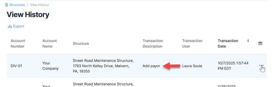 A payor history feature has been added to all three assets that use payors: Vehicles, Structures, and Other Exposures. This allows users to see when payors are changed and by which user. The history can be viewed by clicking ‘History’ under the More drop-down menu in the module grid or by selecting ‘View History’ for an individual row.
