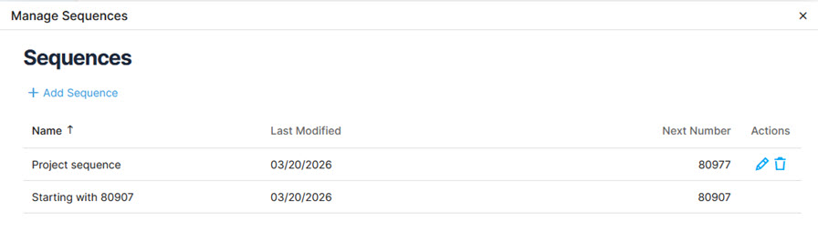 In Quadra, number sequences are used to help standardize identification numbers on invoices and projects. By establishing sequence rules, users can create customized formats for identification numbers that are automatically generated for projects or invoices.