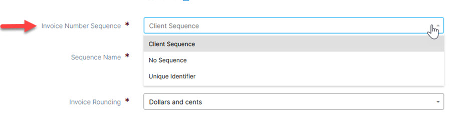 Number sequences for invoices are managed in the Accounting tab when creating an allocation. The settings are found under More Settings. Selecting Client Sequence allows you to create a custom rule: