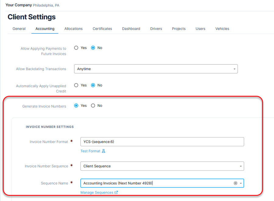 In addition to this new report option, an automatic invoice numbering system is now in place for invoices that are added manually or imported. Built on the expanded invoice numbering options released with v11.3.4, this is another setting available under Client Settings in Administration. This option gives users the ability to automatically number invoices using a custom sequence and it is separate from the number generation settings available within the Allocations module.