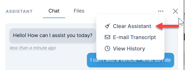 If the assistant has difficulty accessing your file, select Clear Assistant under the options menu, upload the file again, and repeat your request.