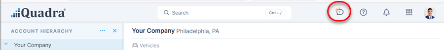 Quadra's AI assistant can be accessed by clicking the icon on the upper menu on the interface.