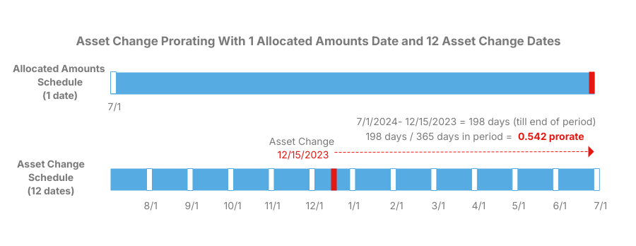 Example 1 - Asset Change Prorating With 1 Allocated Amounts Date and 12 Asset Change Dates