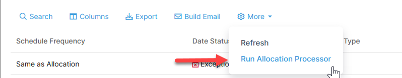 The allocation processor automatically runs once daily at 9:00 am EST and processes any allocations (amounts, invoices, asset changes) scheduled for that day. Starting an allocation will also trigger the processor to run.