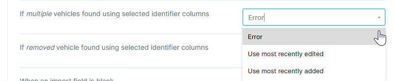 Use most recently added: The existing record that was most recently added will be edited with the imported information.