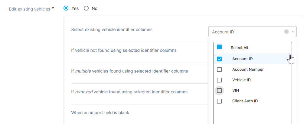 Use the checkboxes to indicate which fields will be used to match imported records with those in the database.