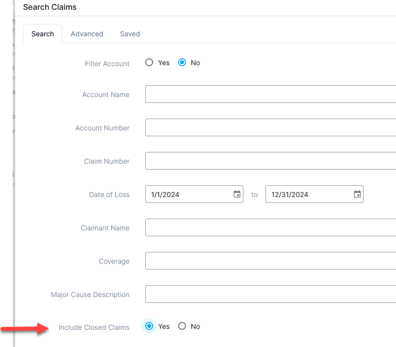 You can also view closed claims using the Search function. On the main Search tab, select Yes for Include Closed Claims.