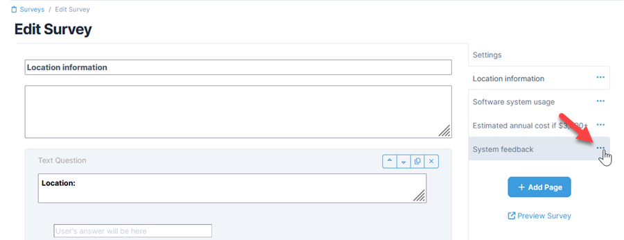 - From the Add Survey or Edit Survey page, click the ellipsis next to the page title on the right hand side.