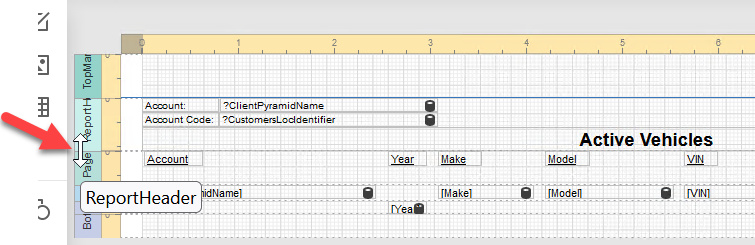 On the Design Surface, reports are divided into horizontal sections called bands, which are labeled on the far left. There are also margins on the left and right sides.