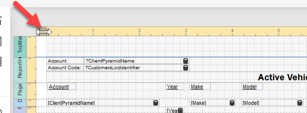 To change the height of the bands or width of the margins, hover the cursor over one of the lines until it turns into an arrow. Click and drag to change the size.