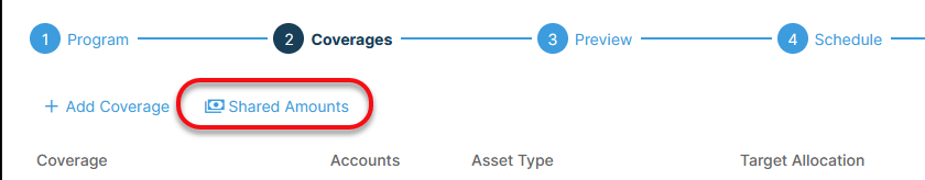 - From the Coverages section in the Allocations module, select Shared Amounts.