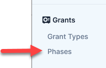 - On the left hand menu, go to Grants and click Phases.