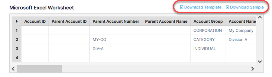 - Above the image, click Download Template. If you need to download a file with sample rows, click Download Sample.