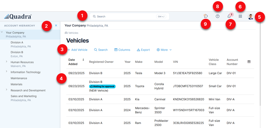 - Quick Search Bar - Easily locate assets, accounts, and more using this broad search tool.
