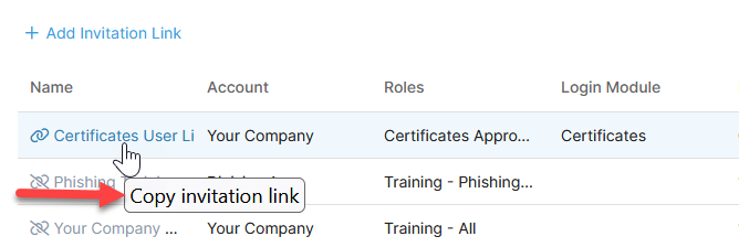 - After creating an invitation link, return to the main Invitation Links page in Administration.