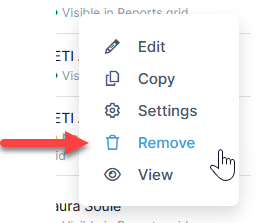 - Select a report from the grid and, under the action menu, select Remove.