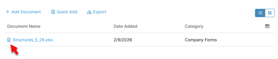 Alternatively, use the Quick Add feature or the drag-and-drop method to add documents. With these methods, the category and description will not be included. These can be edited once the document is added.