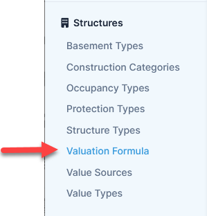 - On the left hand menu, go to Structures and click Valuation Formula.