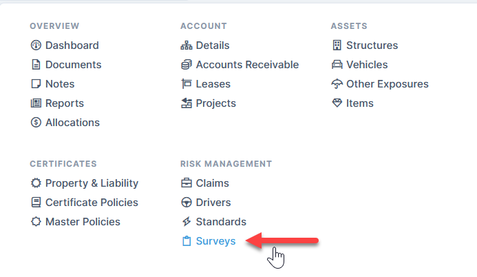 - Under Risk Management, click Surveys.
