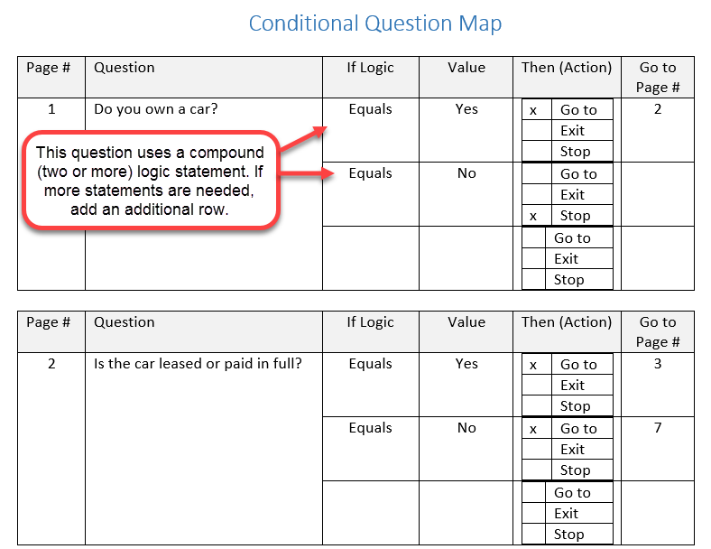 View the Conditional Question Map (opens an external link to a MS Word document).